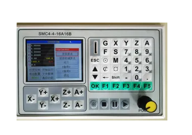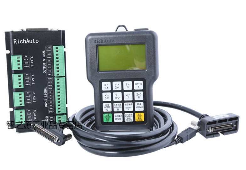 ??二.手柄控制:即可以拿在手上控制雕刻機(jī)的運(yùn)動(dòng)。節(jié)省空間,不占用電腦;缺點(diǎn)是操作相對(duì)麻煩,畢竟所有的功能都集合在一個(gè)控制面板上,操作不熟練很容易按錯(cuò)功能鍵。廣泛應(yīng)用與各種雕刻機(jī)(含四軸聯(lián)動(dòng)),無(wú)需占用單獨(dú)的電腦,極大的縮小了設(shè)備的占地空間,另外對(duì)刀也較為方便。缺點(diǎn)是沒(méi)有預(yù)覽等功能,界面不如電腦直觀。